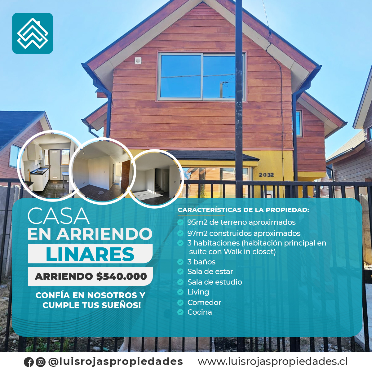 ✅ 3 habitaciones (habitación principal en suite con Walk in closet)